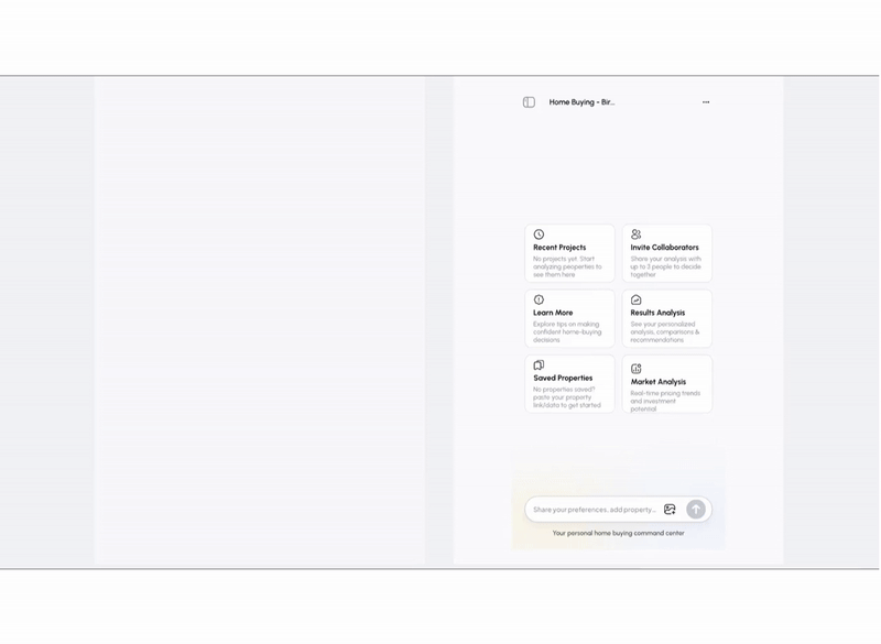 Led design and prototype of an AI-first chat experience that converts user-submitted property data into a defensible, explainable shortlist — reducing decision friction and enabling fast market validation.